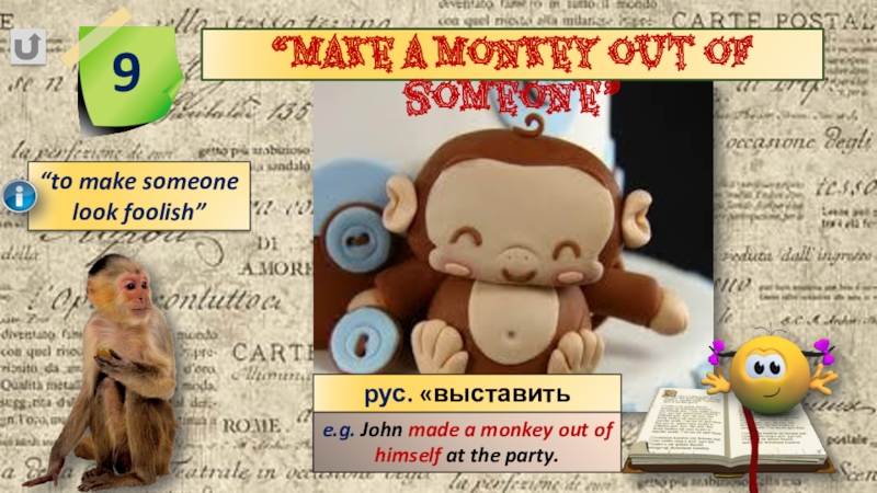 e.g. John made a monkey out of himself at the party.