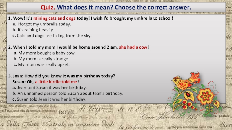 Quiz. What does it mean? Choose the correct answer.