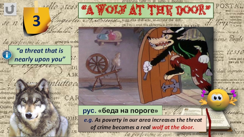 e.g. As poverty in our area increases the threat of crime becomes a real wolf at the door.