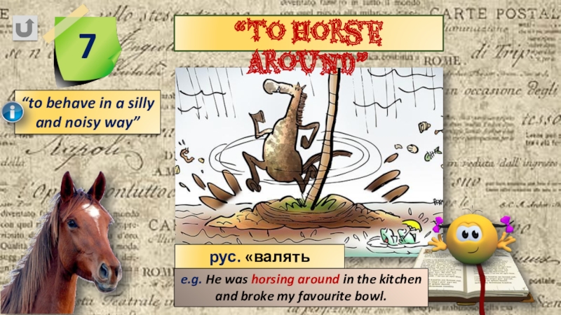 e.g. He was horsing around in the kitchen and broke my favourite bowl.