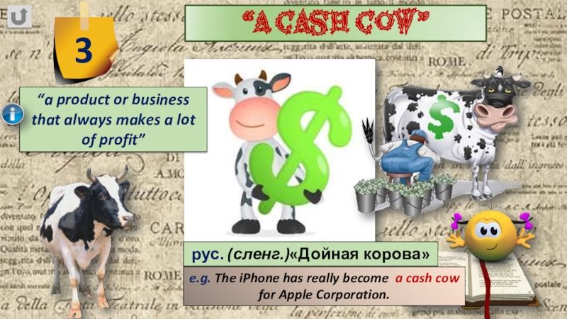 e.g. The iPhone has really become a cash cow for Apple Corporation.