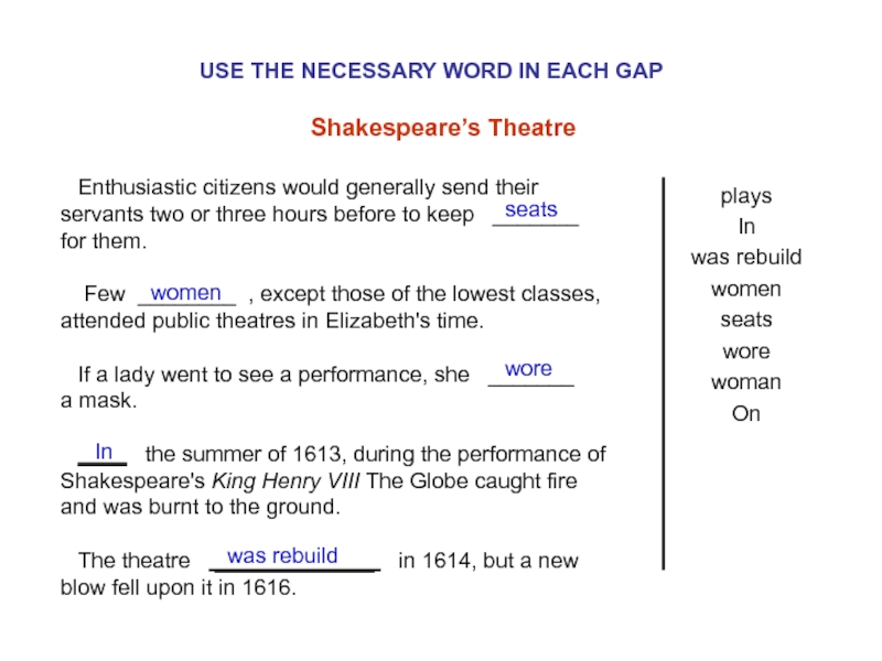 CHOOSE THE RIGHT WORD AND PUT IT IN THE GAP