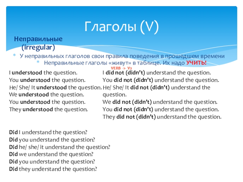 You did not (didn’t) understand the question.