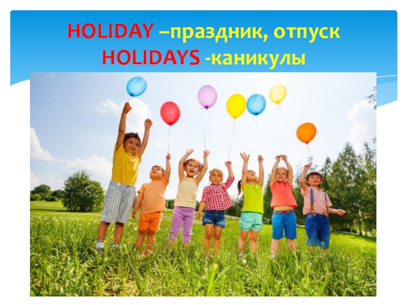 Слайд 5HOLIDAY –праздник, отпуск HOLIDAYS -каникулы