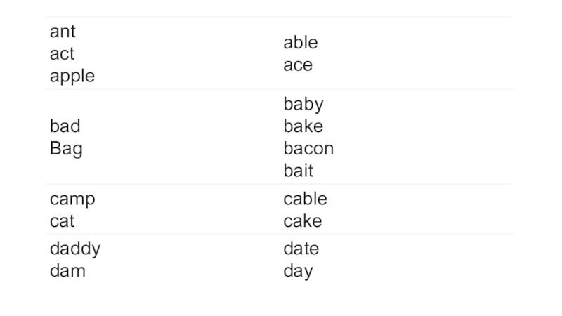 Aaоткрытый слогзакрытый слогcat fathandlampnamelakegamelate