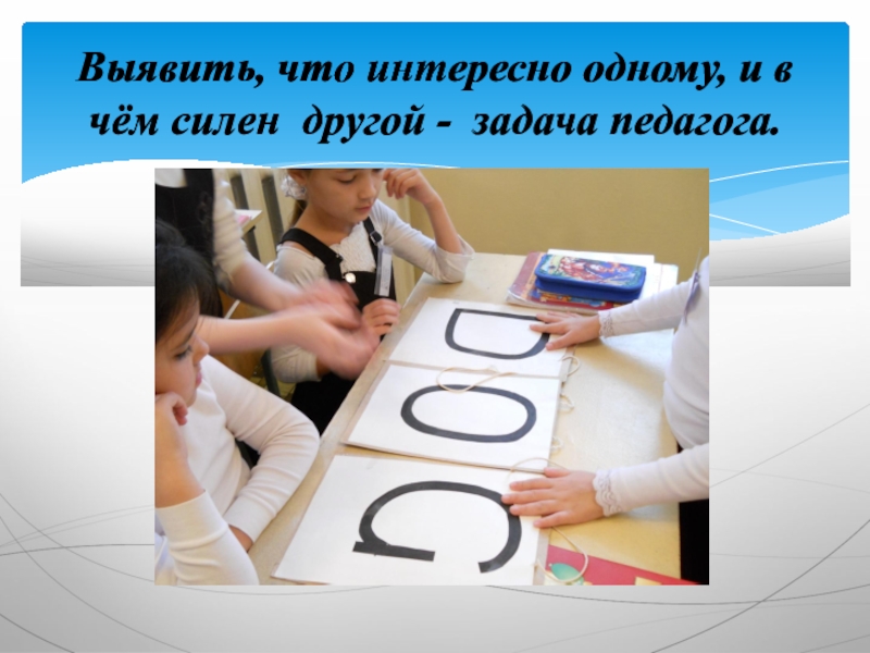 Выявить, что интересно одному, и в чём силен другой - задача педагога.
