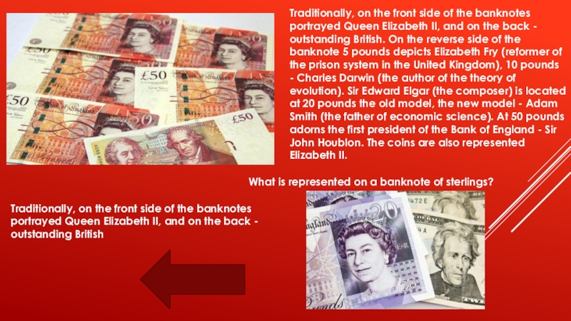 Traditionally, on the front side of the banknotes portrayed Queen Elizabeth II, and on the back - outstanding British