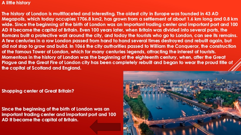 Since the beginning of the birth of London was an important trading center and important port and 100 AD It became the capital of Britain.