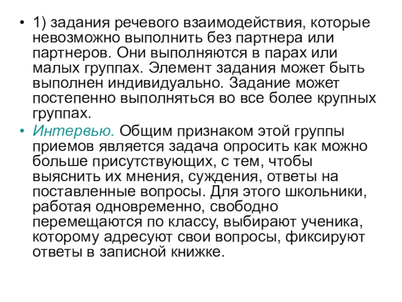 Слайд 121) задания речевого взаимодействия, которые невозможно выполнить без партнера или партнеров.