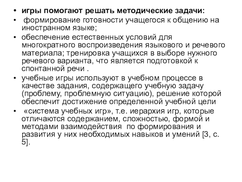 Игра – мощный стимул к овладению иностранным языком и эффективный прием в арсенале преподавателя иностранного языка, «универсальное средство, помогающее учителю иностранного языка превратить достаточно сложный процесс обучения в увлекательное и любимое учащимися занятие».