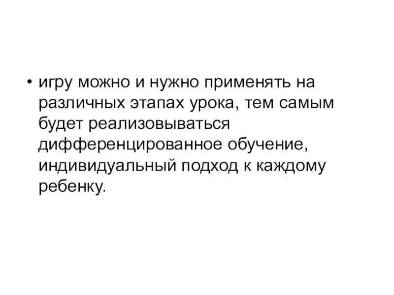 Слайд 3игру можно и нужно применять на различных этапах урока, тем самым