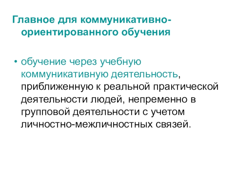Слайд 10Главное для коммуникативно-ориентированного обучения