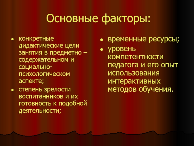 уровень компетентности педагога и его опыт использования интерактивных методов обучения.