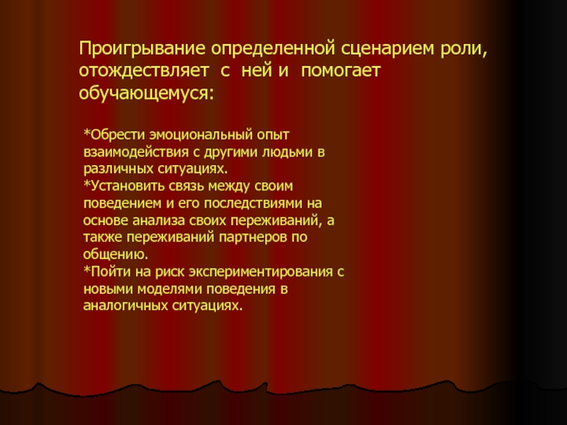 специально организованного и регулируемого «проигрывания» жизненной ситуации или профессиональной ситуации