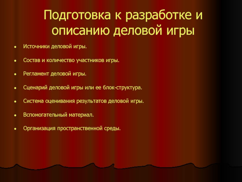 Слайд 29Подготовка к разработке и описанию деловой игры