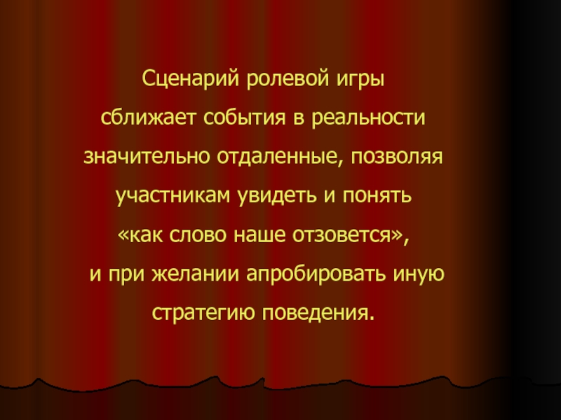 Завершается обсуждение сопоставлением проигранной ситуации с реальными событиями,