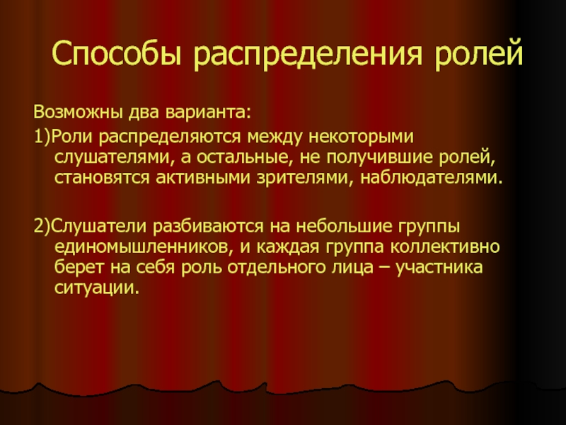 1)Роли распределяются между некоторыми слушателями, а остальные,