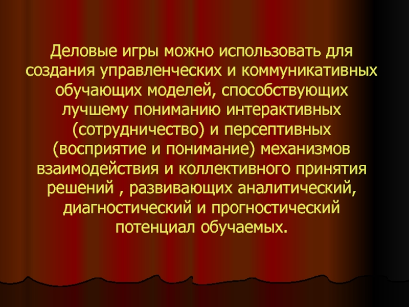 Слайд 20Деловые игры можно использовать для создания управленческих и коммуникативных обучающих моделей,