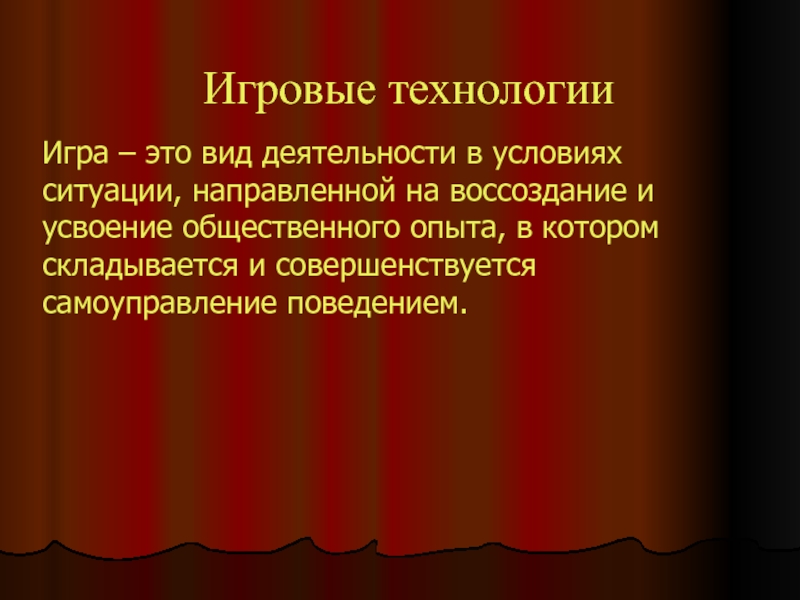 ситуации, направленной на воссоздание и усвоение общественного опыта, в котором складывается и совершенствуется самоуправление поведением.