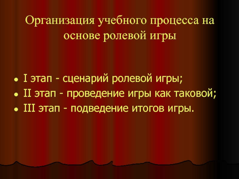 Слайд 9Организация учебного процесса на основе ролевой игры