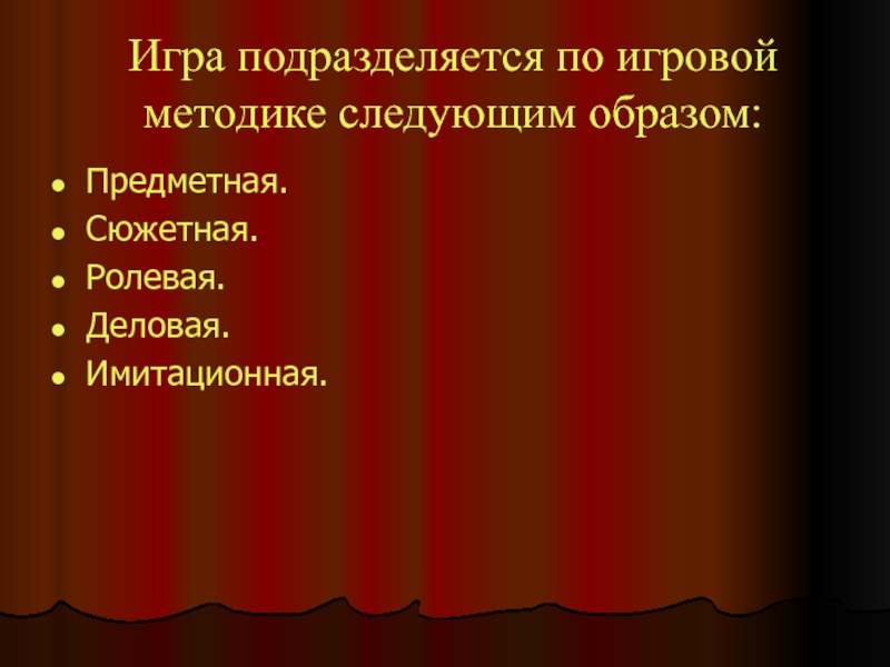 Слайд 5Игра подразделяется по игровой методике следующим образом: