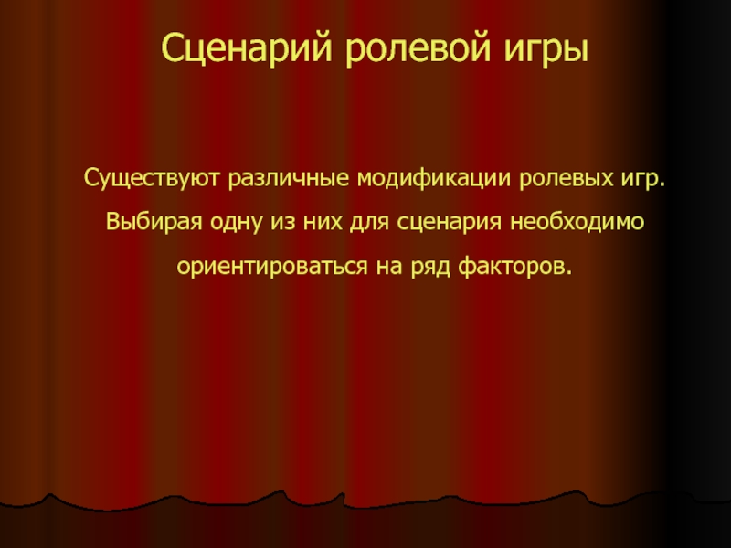 Существуют различные модификации ролевых игр. Выбирая одну из них