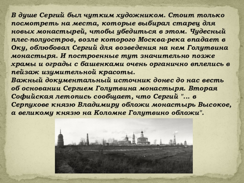 Слайд 9В душе Сергий был чутким художником. Стоит только посмотреть на места,