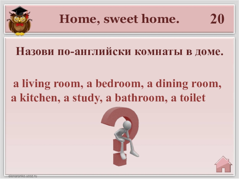 Назови по-английски комнаты в доме.
