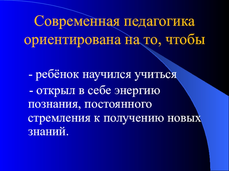 Слайд 6Современная педагогика ориентирована на то, чтобы