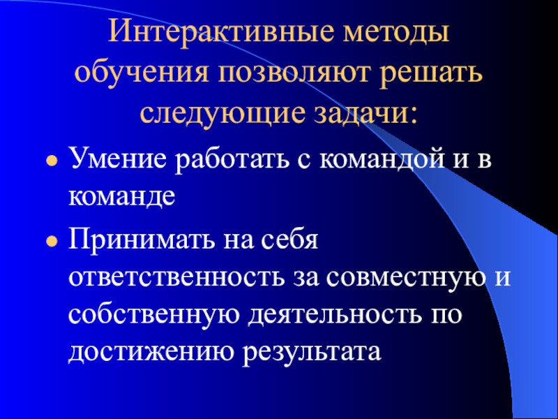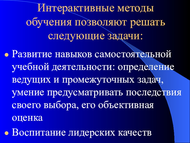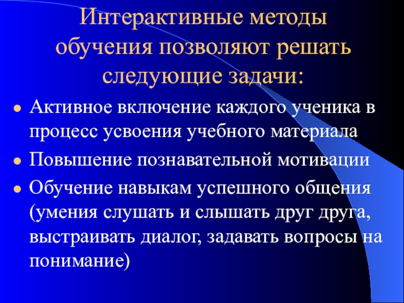 Слайд 12Интерактивные методы обучения позволяют решать следующие задачи: