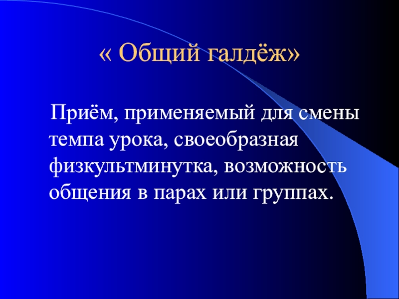 Приём, применяемый для смены темпа урока, своеобразная