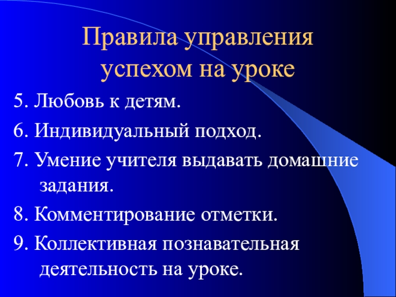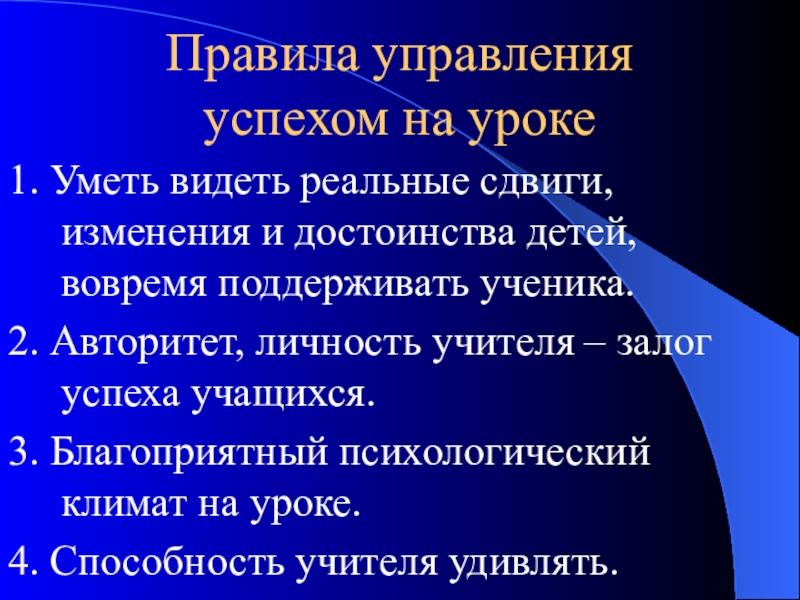 Слайд 41Правила управления успехом на уроке