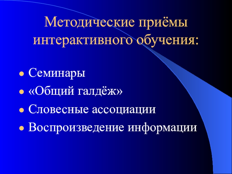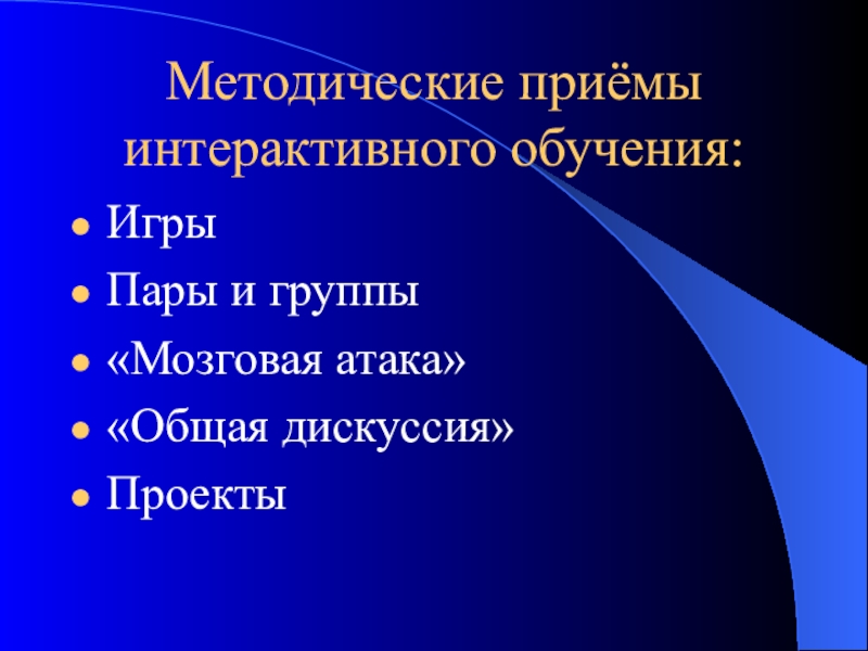 Слайд 18Методические приёмы интерактивного обучения: