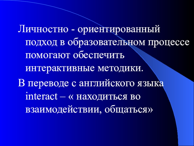 Слайд 9Личностно - ориентированный подход в образовательном процессе помогают обеспечить интерактивные методики.