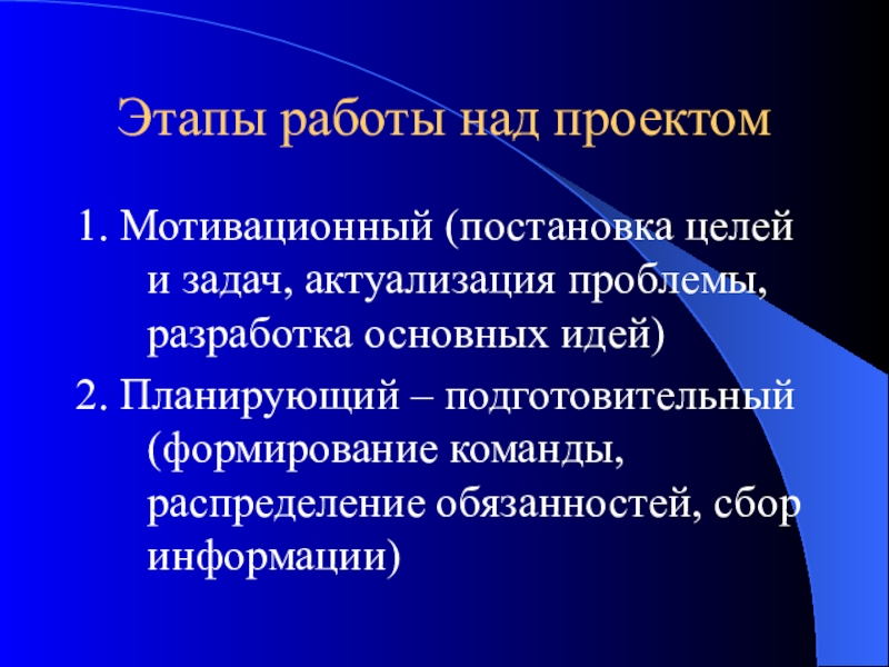 2. Планирующий – подготовительный (формирование команды, распределение обязанностей, сбор информации)