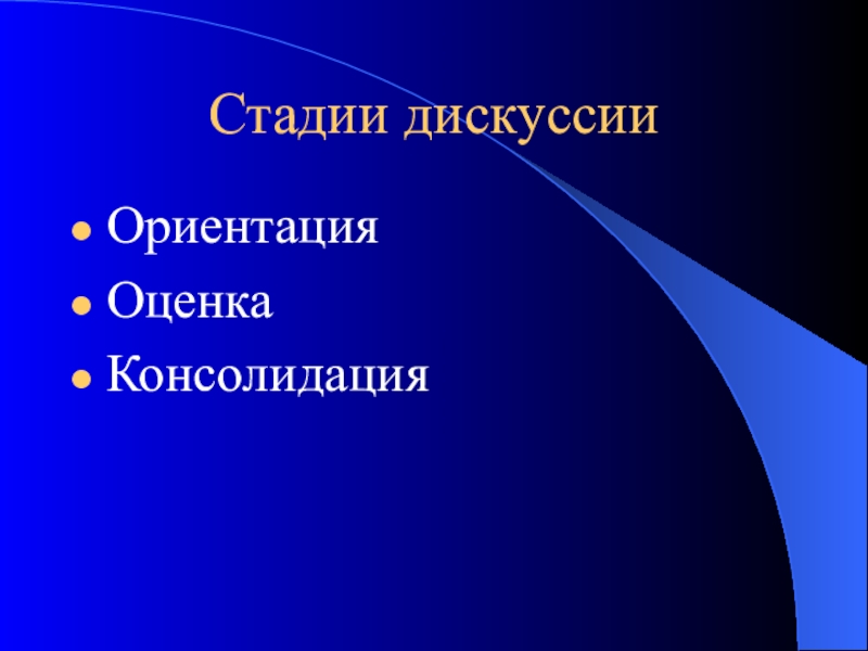 Слайд 29Стадии дискуссии