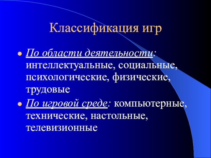 Слайд 19Классификация игр: