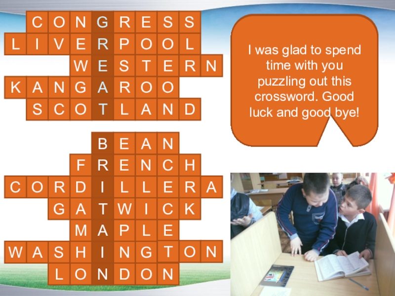 I was glad to spend time with you puzzling out this crossword. Good luck and good bye!