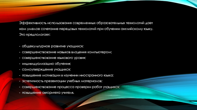 Слайд 3Эффективность использования современных образовательных технологий дает нам умелое сочетание передовых технологий