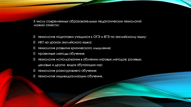 Слайд 2К числу современных образовательных педагогических технологий можно отнести: