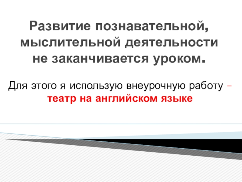 Развитие познавательной, мыслительной деятельности не заканчивается уроком. Для этого я использую внеурочную работу – театр на английском