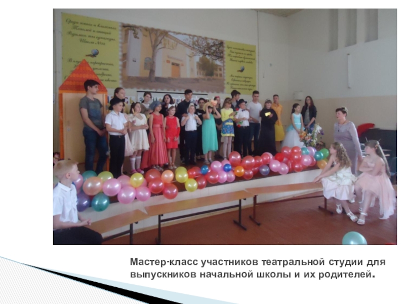 Слайд 9Мастер-класс участников театральной студии для выпускников начальной школы и их родителей.