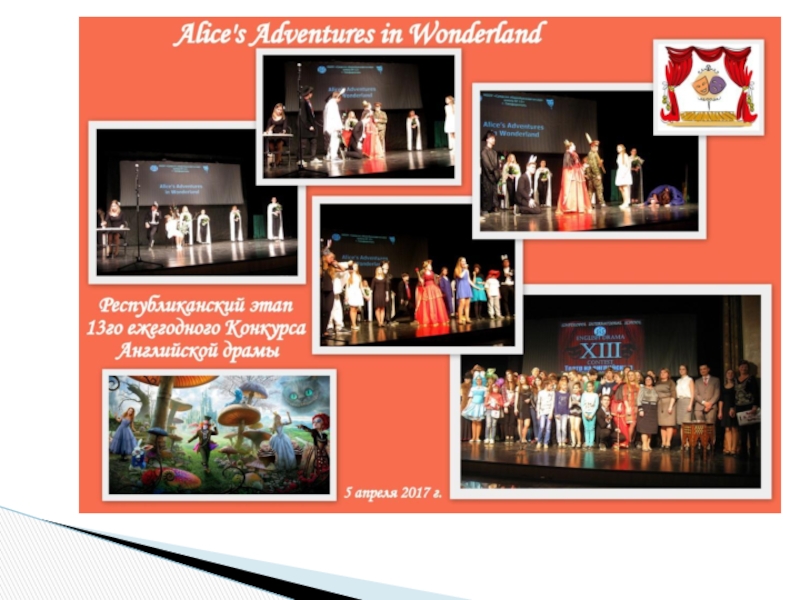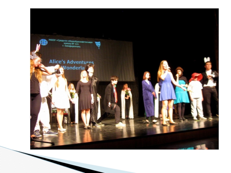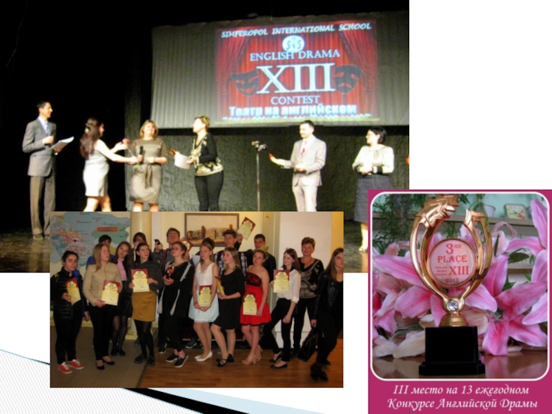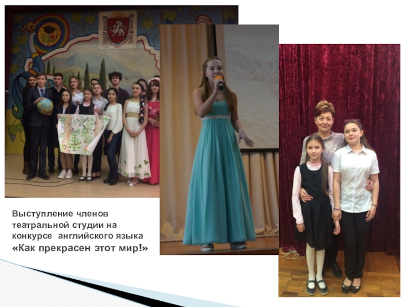 Слайд 11Выступление членов театральной студии на конкурсе английского языка «Как прекрасен этот