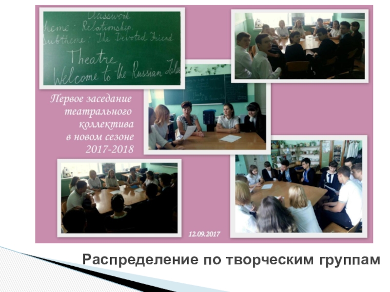 для выбранного спектакля); 3группа: Художники –оформители (декорации для спектакля); 4группа:Артисты 5группа:Вокалисты-певцы; 6группа:Танцоры; 7группа:Рекламное агентство (изготовление афиши, реклама спектакля)