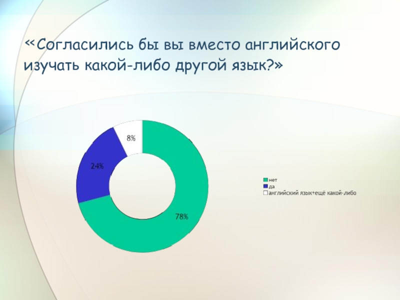 Слайд 17«Согласились бы вы вместо английского изучать какой-либо другой язык?»