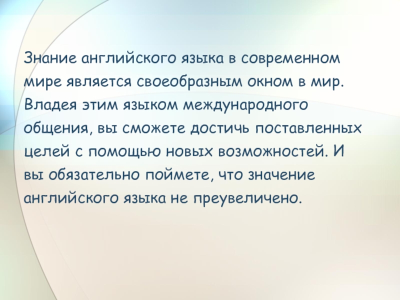 Слайд 6Знание английского языка в современном мире является своеобразным окном в мир.