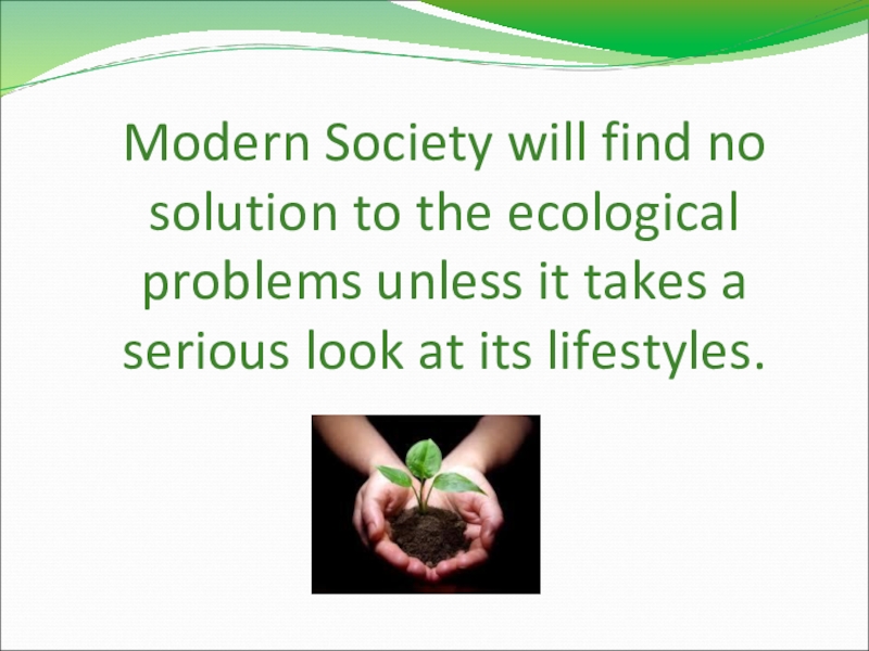 Слайд 28Modern Society will find no solution to the ecological problems unless