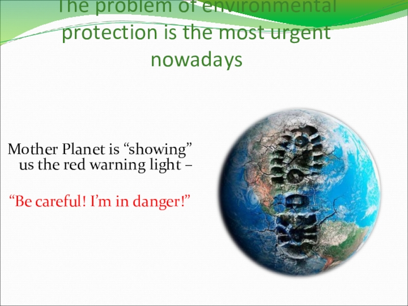 Слайд 2The problem of environmental protection is the most urgent nowadays