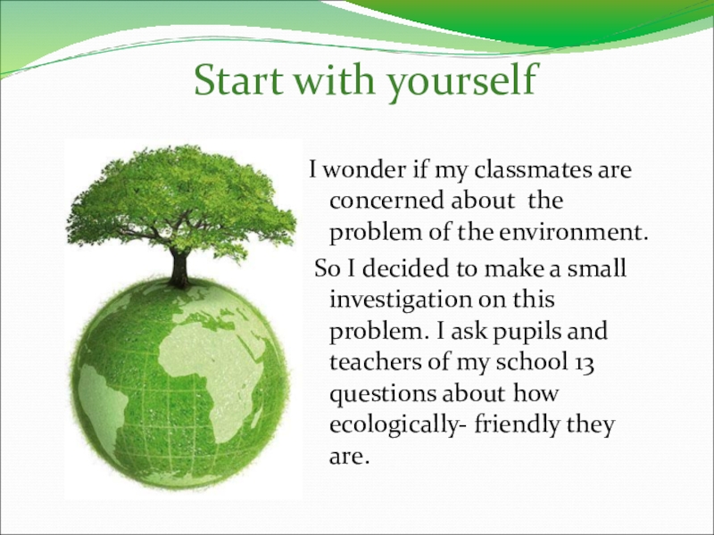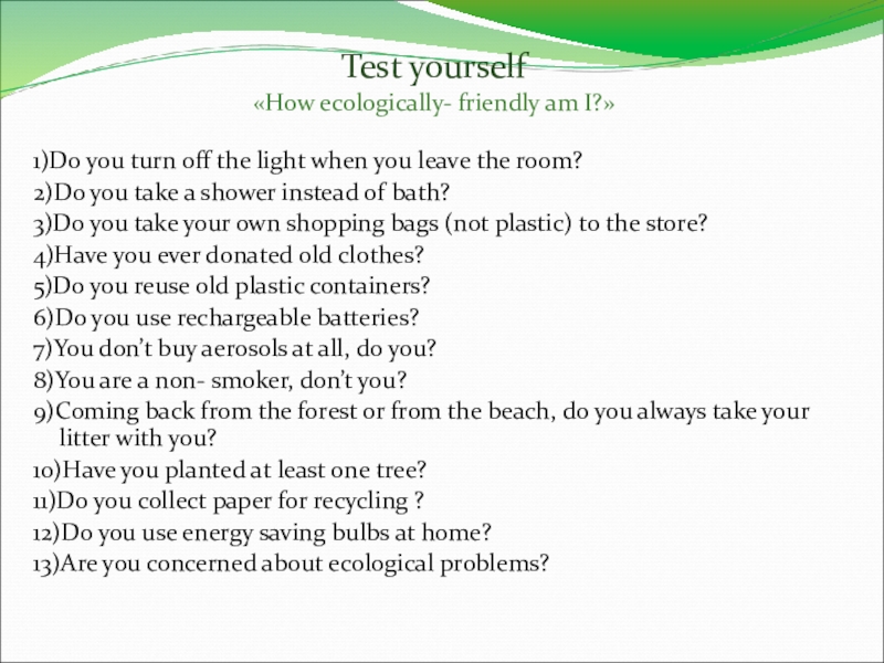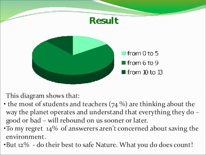 So I decided to make a small investigation on this problem. I ask pupils and teachers of my school 13 questions about how ecologically- friendly they are.