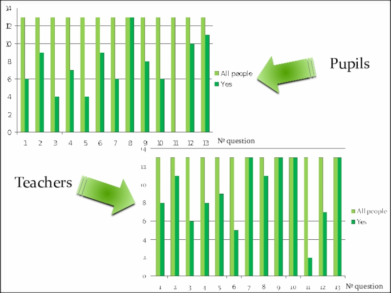 All teachers say “yes” on the 7,9,10, 13 questions. And even 2 of them collect paper, although there is no facilities for recycling in our area. The rest of respondents are also eager to do it.